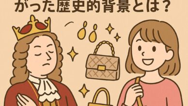 バッグとアクセサリーの歴史 貴族から庶民へ|アクセサリーとバッグが広がった歴史的背景とは? かつては貴族や上流階級だけのものであったアクセサリーとバッグ。それがどのように庶民へと広がっていったのか、歴史的・社会的背景を時代別に解説。おしゃれの民主化の過程を読み解きます。 2025.10.18 バッグとアクセサリーの歴史ファッションアイテムの進化